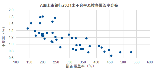 横向来看,不同银行拨备计提的“尺度”有所不同。以A股上市银行为例,2025年一季报各银行中拨备覆盖率最高值为530%,最低值为144%,导致不同银行之间的利润缺乏可比性。