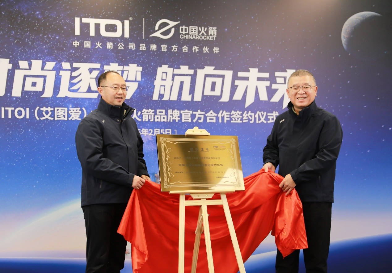 2026年2 月 5 日,中国长征火箭有限公司(简称中国火箭)与艾图爱(ITOI)(北京)体育用品有限公司品牌官方合作签约仪式在艾图爱总部举行,双方将围绕技术融合、品牌联名、文化共建和市场拓展等方面展开深度合作,携手探索"航天科技+功能时尚"的跨界创新模式。