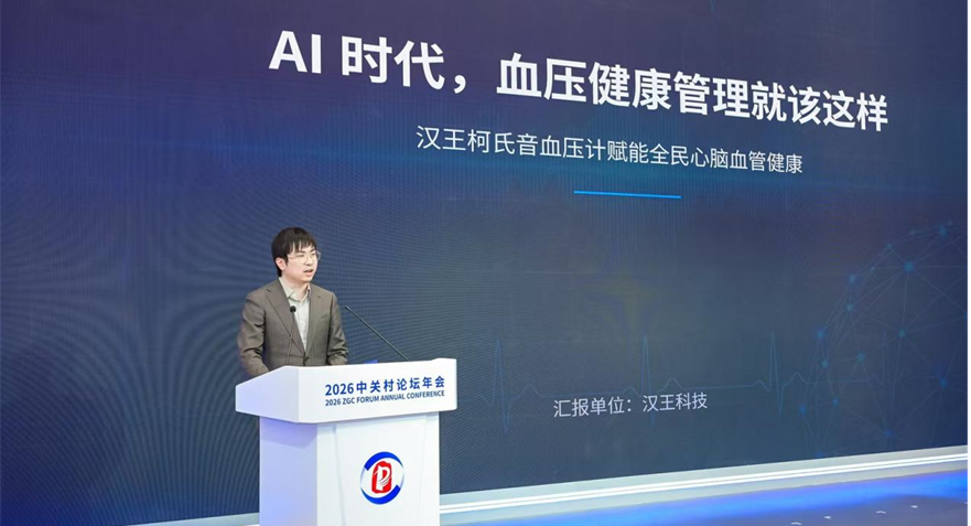 3月26日举行的2026中关村论坛年会“医学AI创新与发展大会”上,汉王科技副总裁、汉王大健康总经理刘秋童发表题为《AI时代,血压健康管理就该这样》的主题演讲,向全球展示了汉王大健康在血压健康管理领域的重大突破,传递出“汉王柯氏音血压计赋能全民心脑血管健康”的核心理念。作为本届中关村论坛的官方伴手礼,汉王柯氏音血压计以其创新技术和精准测量能力,成为论坛期间备受瞩目的焦点之一。