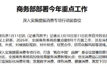 商务部部署今年重点工作 深入实施提振消费专项行动居首位