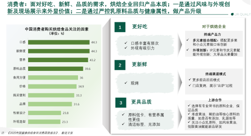 从消费者需求来看,消费者在购买烘焙产品时更关注“好吃、新鲜、品质”