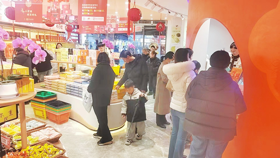 小年至,年货采购正式进入高峰,苏州稻香村线下门店均迎来客流高峰。从苏州的观前街国潮体验店,到北京的“稻香村工坊”现烤直营店;从沈阳的中街旗舰店,到成都的文殊院店,苏州稻香村线下门店均迎来客流高峰。