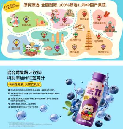 从口感上看,多种果蔬的甜、酸、香被精心配比,无论是胡萝卜口味还是莓果口味,都能带来层次丰富、回味悠长的独特体验。而在口感的加持下,西兰花、紫甘蓝、胡萝卜,被自然地融入了饮品中,即使是不爱吃蔬菜的群体,通过宝宝满分也能够获得蔬菜带来的充足营养,健康与美味相辅相成。
