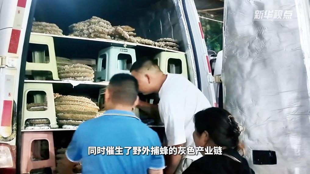 在昆明某市场,多家摊位常年公开出售各类蜂巢。据了解,这些以危险方式获得的蜂蛹售价在每公斤百元以上。更令人担忧的是,短视频平台上涌现大量捕蜂视频,间接助长了这一危险行为。近年来,因人为的野外摘巢行为,已在云南、四川等地发生多起胡蜂报复性攻击路人事件。