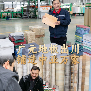 ↑12月12日,在乌兹别克斯坦首都塔什干,当地商家塔什普拉托夫对广元出品的卷材地板竖起大拇指。