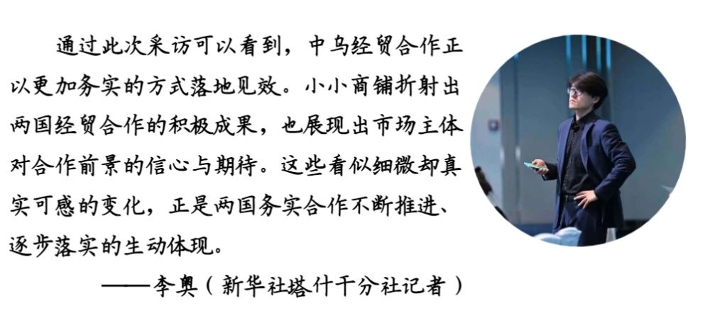 据塔什普拉托夫介绍,他不仅在塔什干销售产品,还向包括布哈拉、撒马尔罕在内的乌兹别克斯坦其他地区发货。他表示,现在生意越做越红火,希望与中国企业继续推进合作。