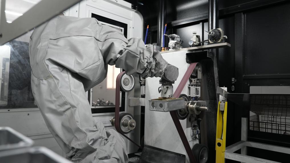 在位于湖南湘潭的普卡科技制造有限公司生产车间内,机器人正在打磨新能源汽车电机外壳。该企业是一家集模具设计、精密铸造、精密加工及表面处理于一体的专业铸件企业,也是当地新能源汽车产业链上的重要一环。