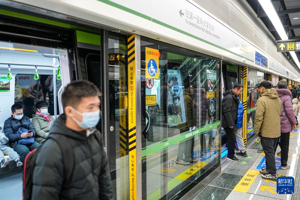 12月27日,市民乘坐济南轨道交通4号线出行。新华社记者 朱峥 摄