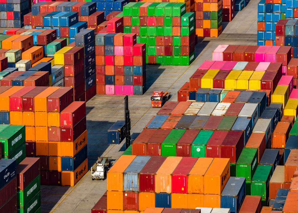 2025年12月8日拍摄的南京港龙潭港区集装箱堆场(无人机照片)。新华社发(辛一摄)