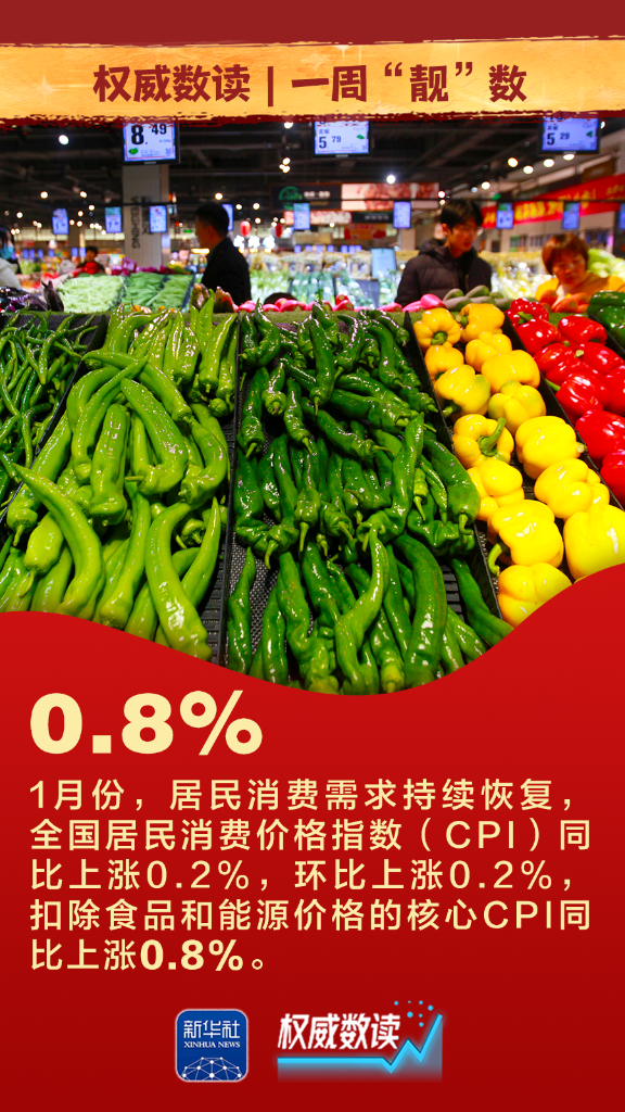 今年春节假期,“乐购新春”春节特别活动已安排20.5亿元“新春礼包”;1月份,核心CPI同比上涨0.8%;2025年经济大省对全国经济增长贡献率为62.2%……本周,这些数据最值得关注。
