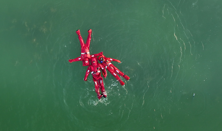 冰场边,热气腾腾的小吃区和火锅暖棚人气十足。更引人注目的是近期爆火的“冰浮小龙虾”项目——游客穿上特制的保暖红色连体服,平躺在湖面上,以贺兰山落日为背景拍照留念。该项目负责人李鹏飞说:“这个项目日落时最受欢迎,我们准备了几十套服装,经常不够用,而且很多都是外地游客。”