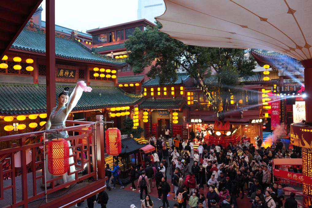 2月19日,游客在湖南省长沙市火宫殿观看演出。新华社记者陈振海 摄