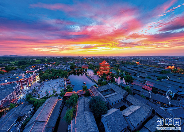 晚霞照古城(摄影:孔闯,拍摄地:山东省枣庄市台儿庄区)