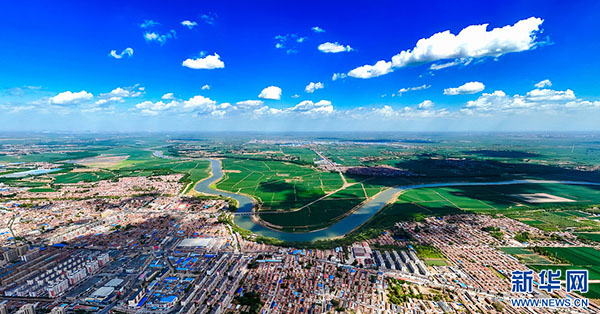 蓝天白云映衬京杭大运河之美(摄影:牟明宏,拍摄地:河北省衡水市故城县县城(郑口镇))