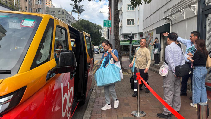 近日,在香港大埔区中心地段,多辆贴有“义载”标识的出租车整齐有序地停靠在路边。司机们协助居民搬运行李、搀扶老人稳步上车……车辆有序驶离,随即又有新的车辆补位等候。