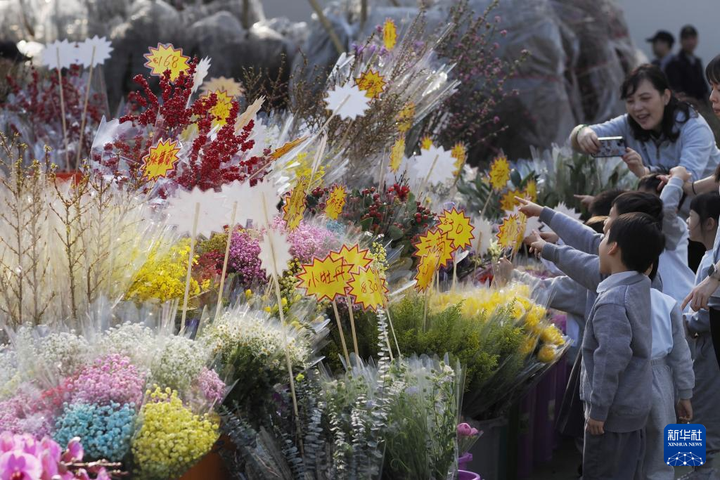 从上海来旅游的赵先生拿着刚买的马年盲盒,在人潮中走走停停。“头回知道香港花市这么隆重,原汁原味的年俗,热闹里还有亲切。”他说,看到身旁的游客正对着桃花林拍照,蜜蜂闻香而至,嗡嗡萦绕花尖,年味十足。