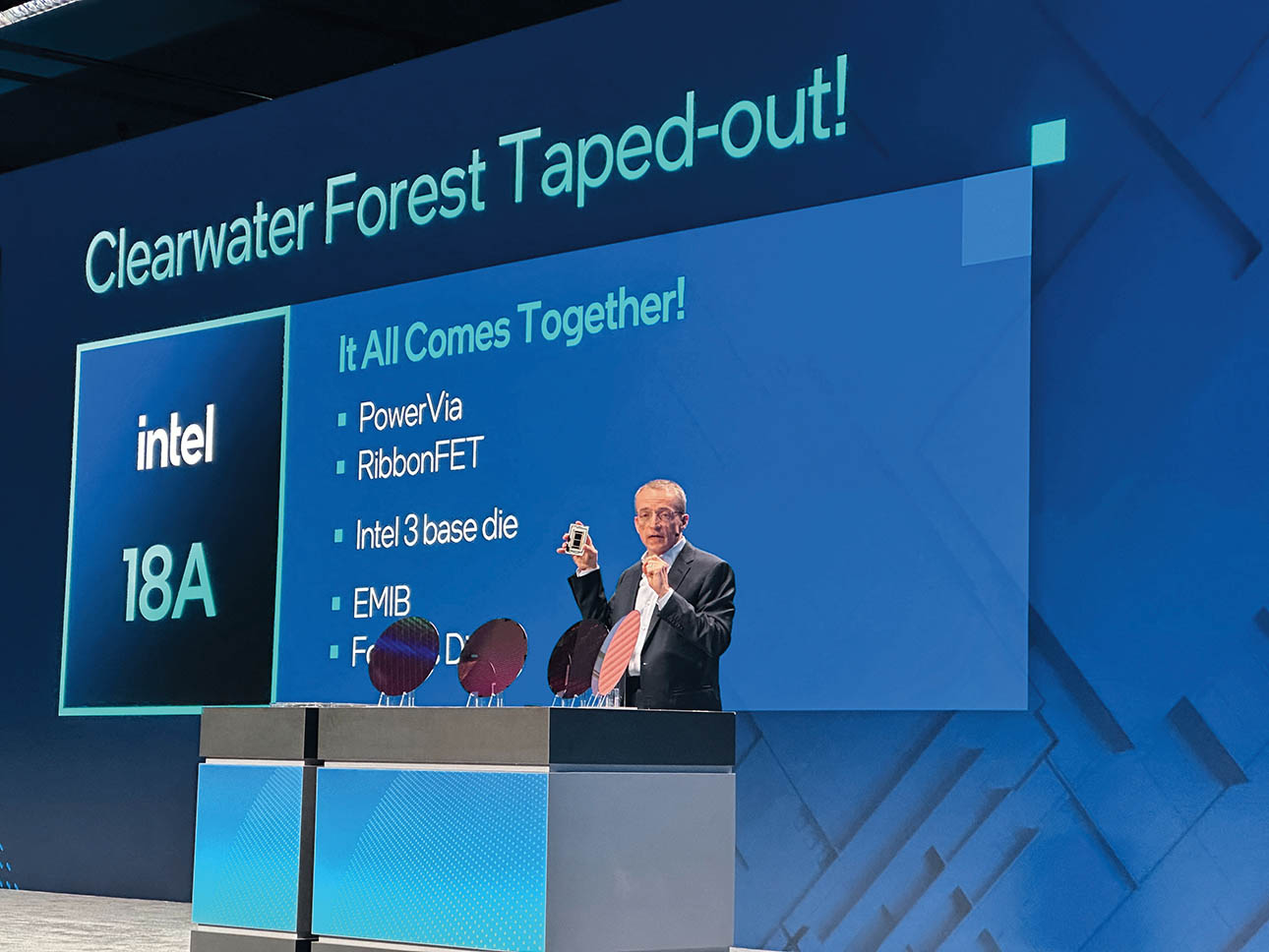 2024 年 2 月 21 日,在美国加利福尼亚州圣何塞,英特尔首席执行官帕特· 格尔辛格在活动上发言。 英特尔公司和微软公司当日宣布,英特尔将为微软代工高端芯片