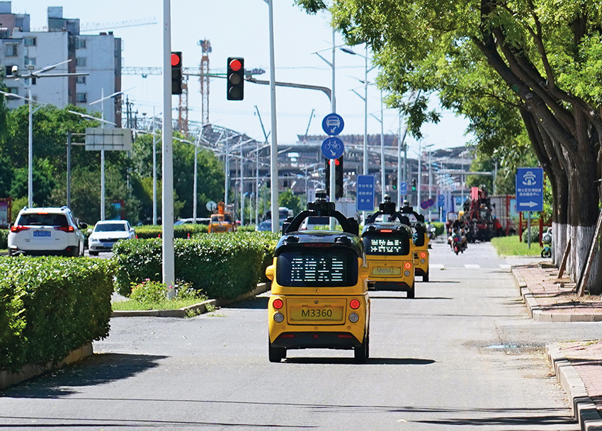 2023年8月22日,自动配送车行进在北京市顺义区的一处道路上 任超摄/本刊