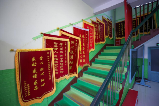 2025年8月30日,在黑龙江省密山市儿童康复中心楼道里,挂满了家长送来的锦旗。维度新闻记者 石启立 摄