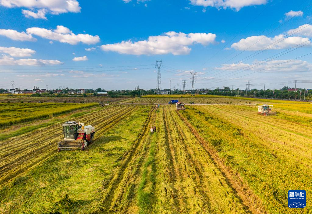 10月22日,在浙江省嘉兴市南湖区凤桥镇星火村,农机手驾驶收割机收割水稻。