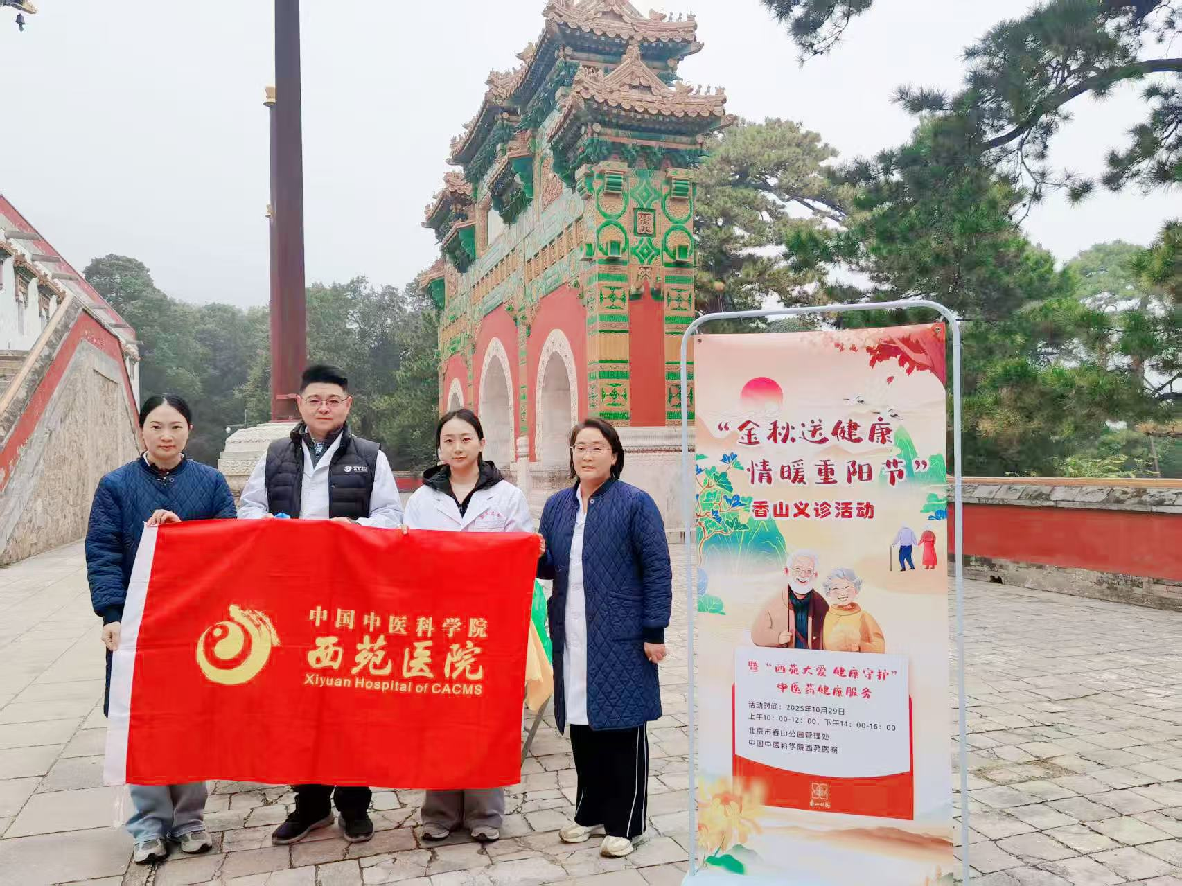 依托西苑医院地处“三山五园”历史文化核心区的区位优势,2025年国庆期间,医院联合海淀文旅在同庆街设立中医健康驿站,累计派出百余名专家,为游客提供脉诊、耳穴压豆、养生茶饮等中医药特色服务,将健康服务务嵌入文旅场景。重阳节当天,医院在香山风景区开展“金秋送健康,情暖重阳节”主题义诊活动,心血管科、综合科等专家团队为老年游客提供辨证指导,护理团队则开展耳穴贴压、温灸刮痧等调理服务,打造出“文旅搭台、健康唱戏”的医旅融合新范式。