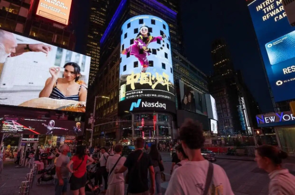 纽约地标大屏上的英歌舞传承人陈楷铭