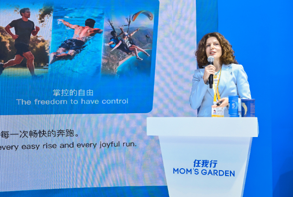 Mom's Garden任我行品牌负责人Olga在消博会品牌发布会上做分享