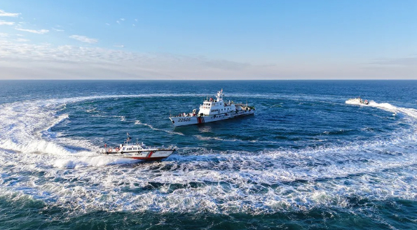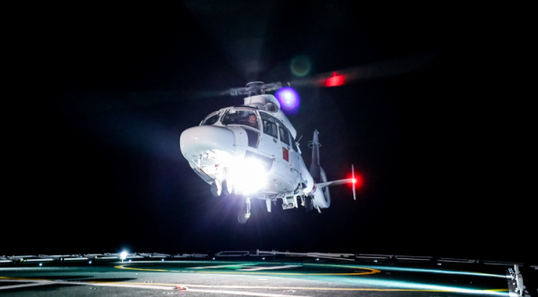 踏浪着舰!南海某海域 海警直升机展开夜间高强度着舰训练