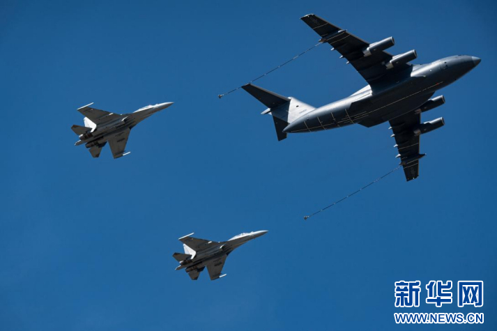 9月20日,运油-20A和歼-16编队通场。新华网 丁梓朔 摄