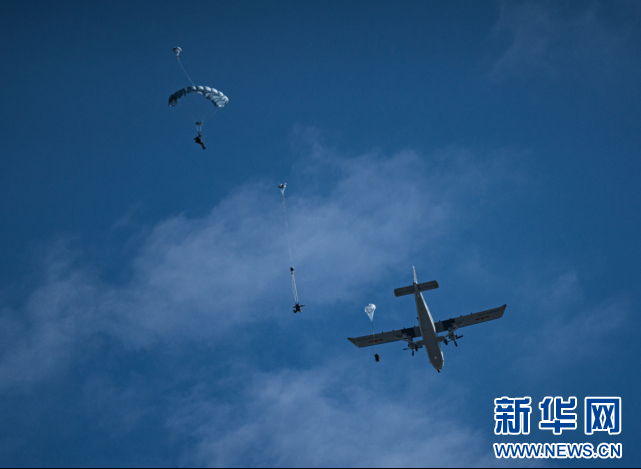 9月20日,空降兵进行伞降投送展示。新华网 丁梓朔 摄