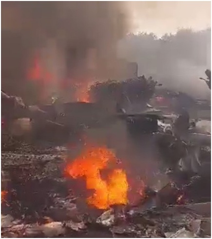 《苏丹论坛报》在报道中配图称,视频截图显示,当地时间11月4日,在西科尔多凡州巴巴努萨市,一架军用飞机的残骸正在燃烧。