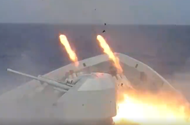 南海某海域,长沙舰与多型舰艇组成训练编队开展多课目实战化训练。此次训练,长沙舰作为编队指挥舰带领舰艇编队完成对海、对空、反潜等数十个课目实战化训练,进一步检验前期战法训法研究成果。看现场,火力全开。