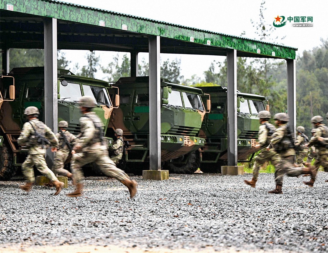 陆军某旅炮兵分队的训练场景。官兵快速出动,奔赴战位。李晨曦 摄