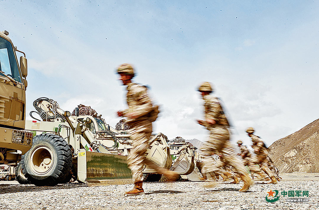 训练开始,传来紧急命令:“某地道路桥梁遭‘敌’损毁,命你部前出抢通!” 官兵闻令而动,迅速登车向目标地域疾驰而去。