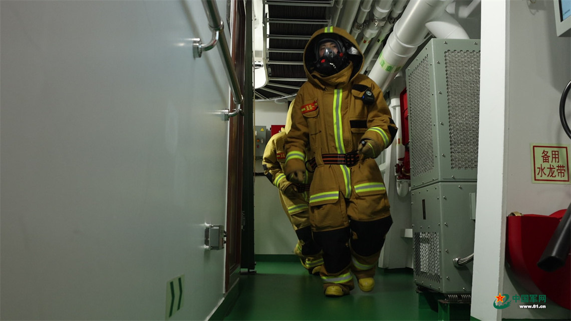 水下危机刚刚解除,火情威胁接踵而至。指挥员根据现场突发状况,指挥区划人员密切配合,全力压制火势蔓延,成功扑灭舱室火灾。
