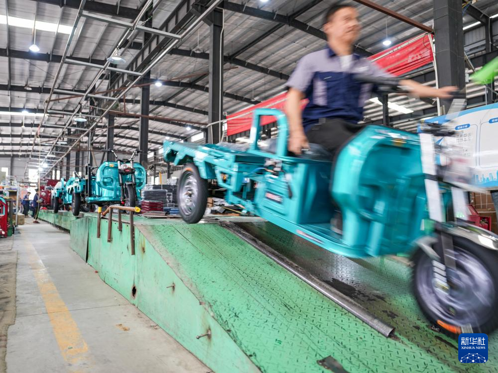在四川眉山天府新区双胜新能源车业有限责任公司的生产车间流水线上,工人们正紧锣密鼓组装一批即将发往非洲、东南亚的电动三轮车。