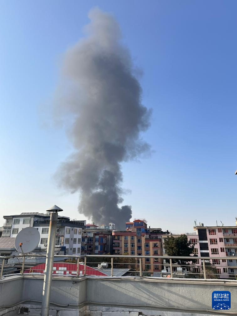 这是10月15日在阿富汗首都喀布尔拍摄的爆炸现场升起的浓烟(手机照片)。