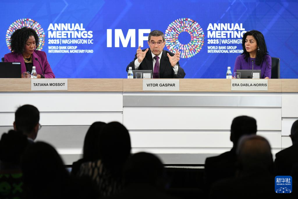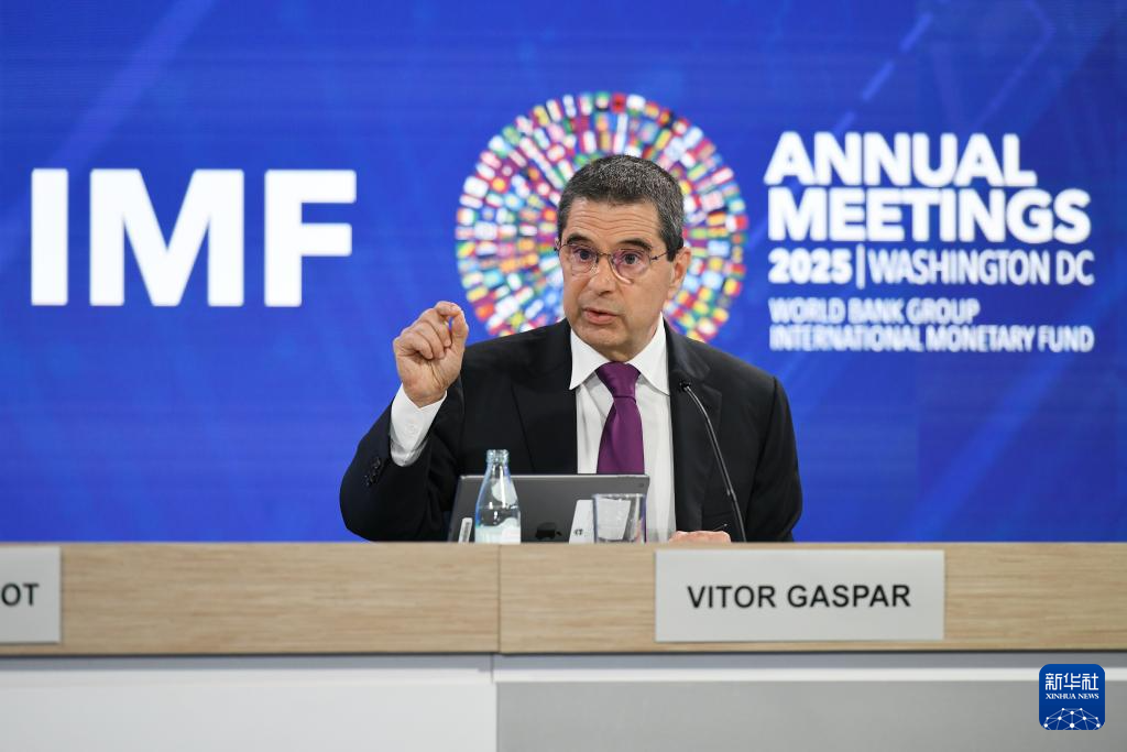 10月15日,在美国华盛顿,国际货币基金组织财政事务部主任维托尔·加斯帕尔(中)在《财政监测报告》新闻发布会上讲话。