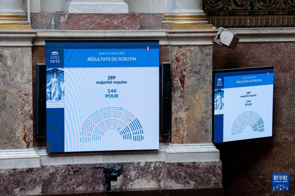 这是10月16日在位于法国巴黎的国民议会拍摄的第二项不信任动议投票结果。