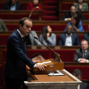 10月16日,在位于法国巴黎的国民议会,法国总理勒科尔尼在不信任动议投票前的辩论环节发言。