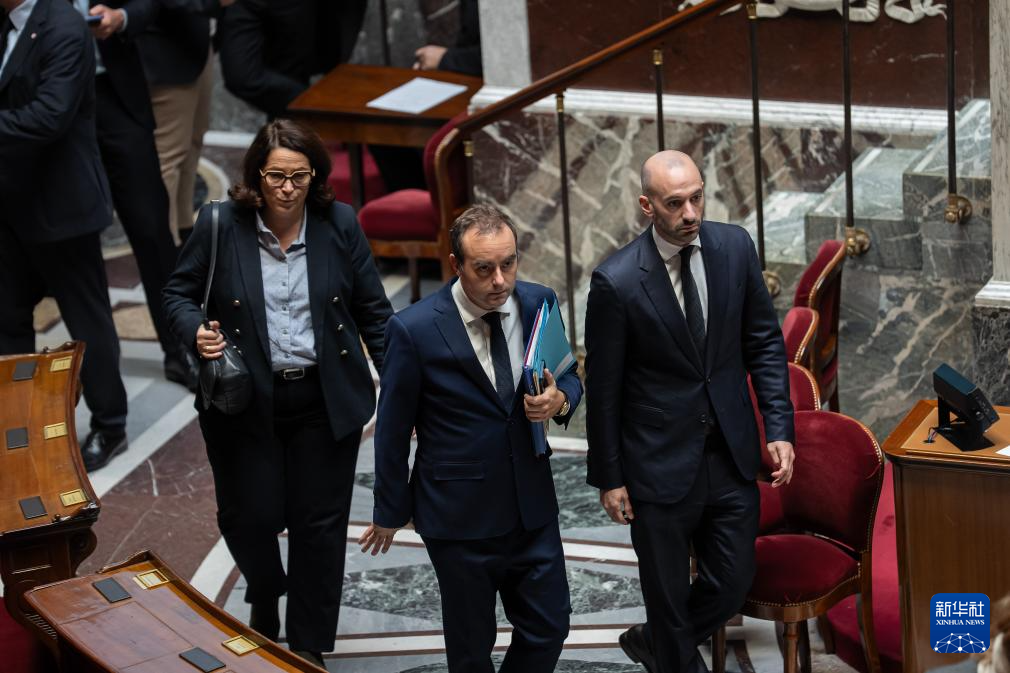 10月16日,在位于法国巴黎的国民议会,法国总理勒科尔尼(中)在不信任动议投票结果公布前返回座位。