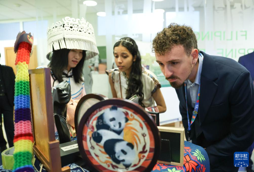 10月15日,在意大利罗马举行的“青禾农遗对话会”上,嘉宾参观中国非遗产品展台。