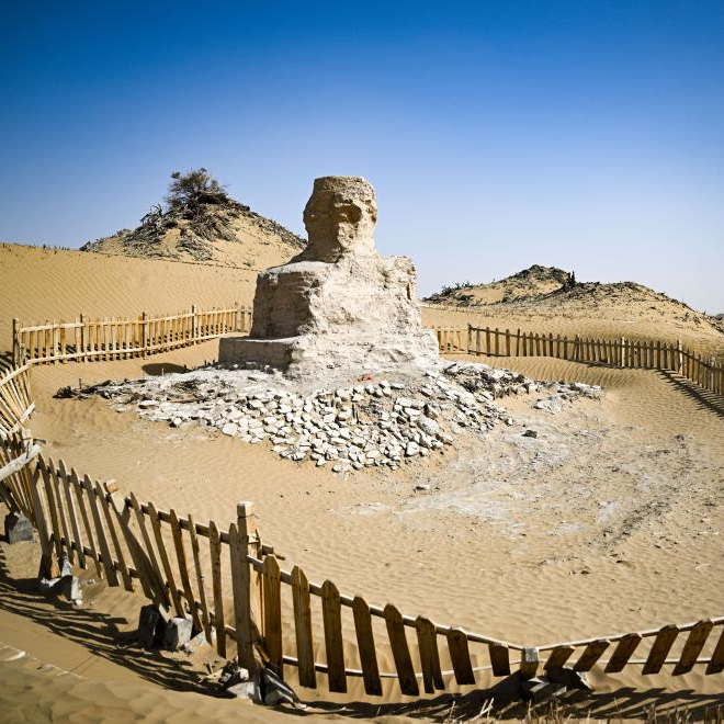 这是尼雅遗址内的佛塔(无人机照片,10月17日摄)。