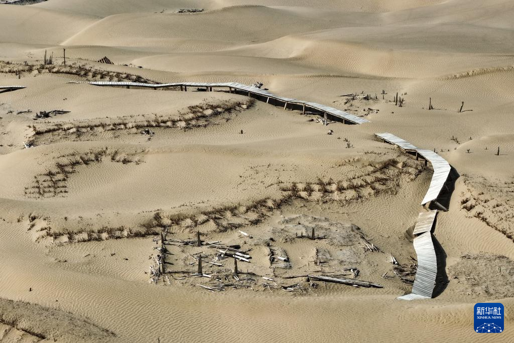 这是尼雅遗址内建筑遗迹等(无人机照片,10月17日摄)。