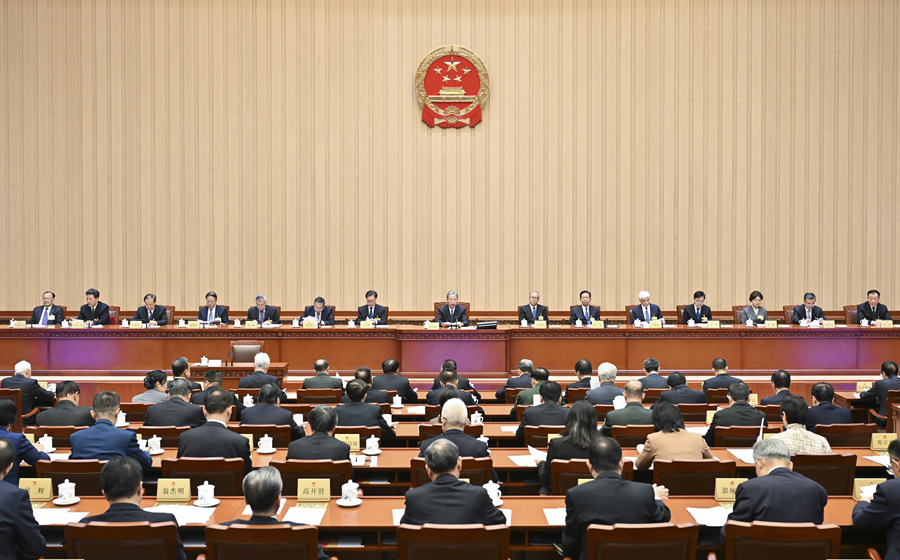 10月24日下午,十四届全国人大常委会第十八次会议在北京人民大会堂举行第二次全体会议。赵乐际委员长主持。