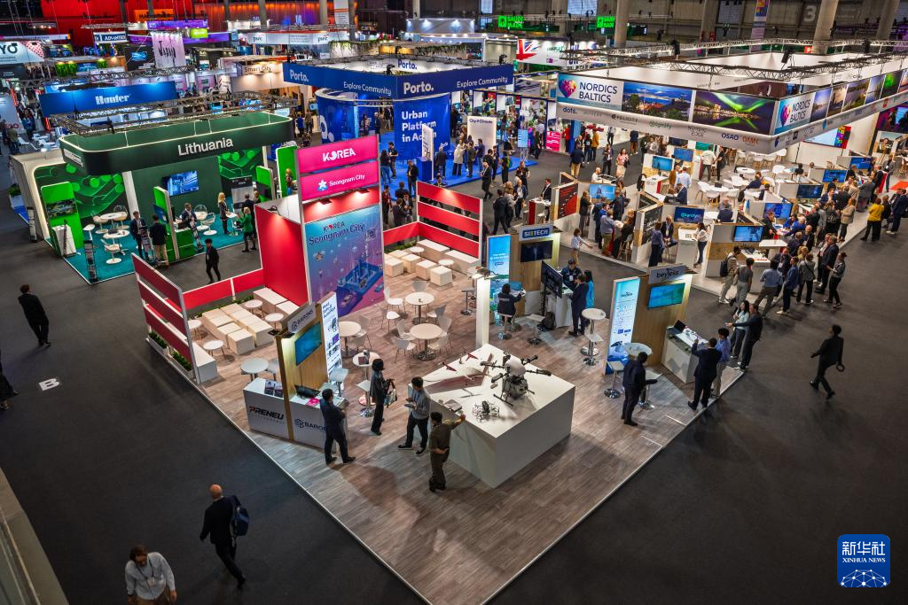 这是11月4日在西班牙巴塞罗那2025全球智慧城市大会上拍摄的参会展台。