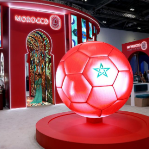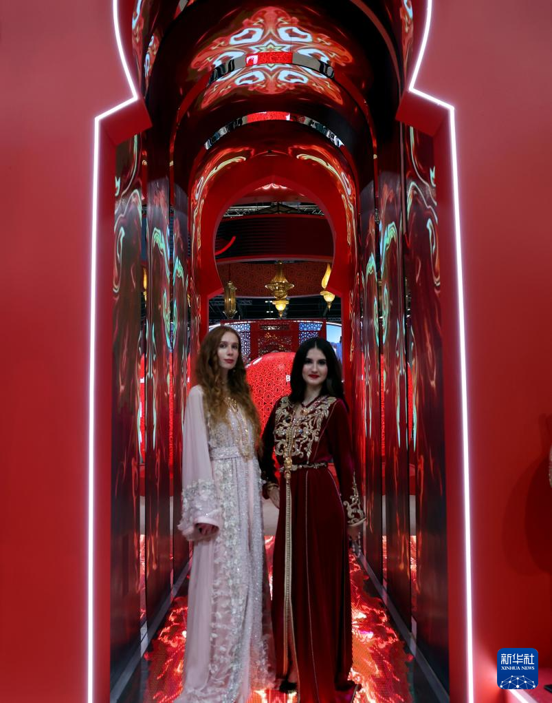 11月4日,在英国首都伦敦,模特在2025年英国伦敦世界旅游交易会摩洛哥展区合影。