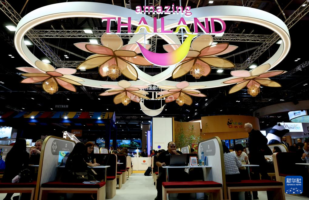 11月4日,在英国首都伦敦,人们在2025年英国伦敦世界旅游交易会泰国展区洽谈。