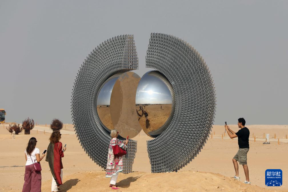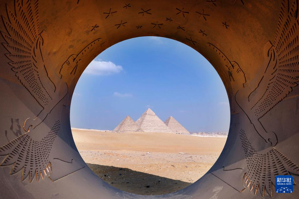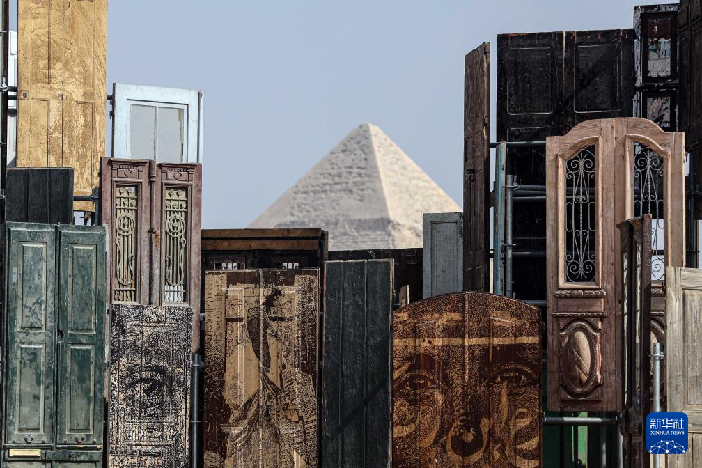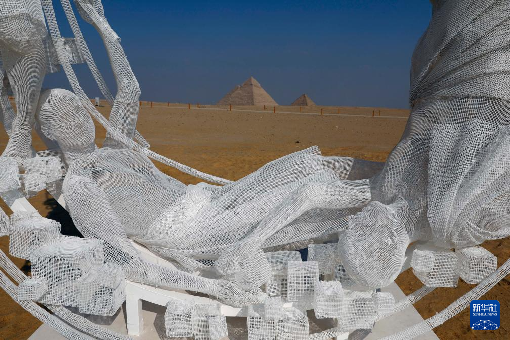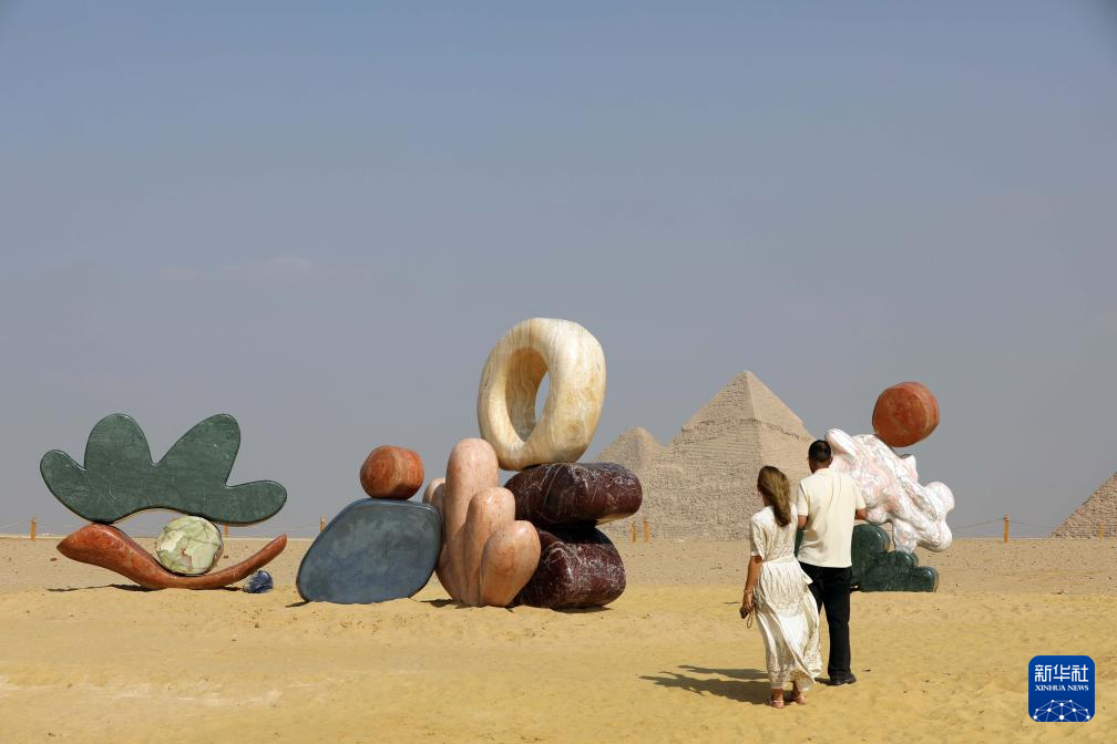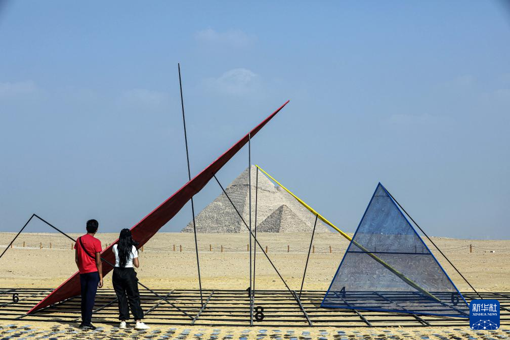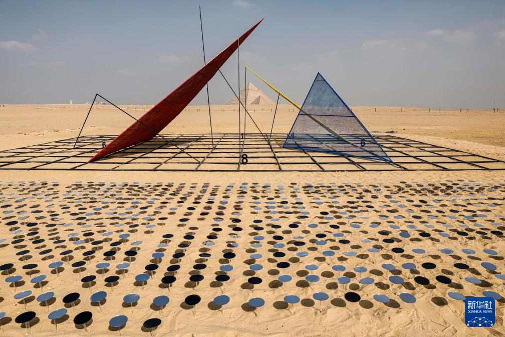 当日,“现在即永恒”国际艺术展在埃及吉萨金字塔景区开幕,露天展出来自不同国家和地区的艺术家的装置艺术作品。展览将持续至12月6日。