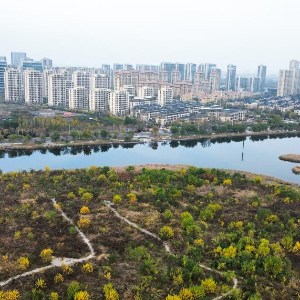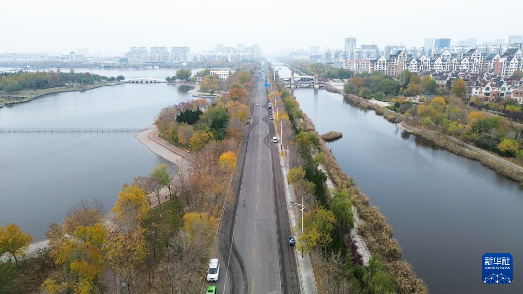 这是11月12日拍摄的东营清风湖湿地公园(无人机照片)。